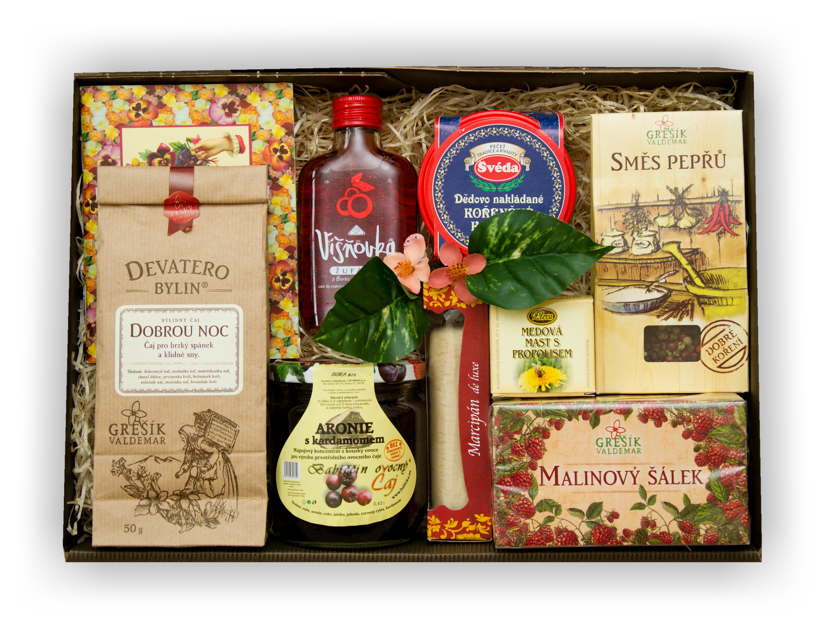 Věnujte dárek s netradičním obsahem. Lahodný malinový šálek nebo čaj z devatera bylin můžete dosladit medovou chuťovkou s ananasem a rumem. Dále si můžete vychutnat dědečkovo kolínko naložené ve směsi koření. V knize staročeských receptů můžete najít, jak upéct staročeskou husu nebo připravit sladké medovníčky.