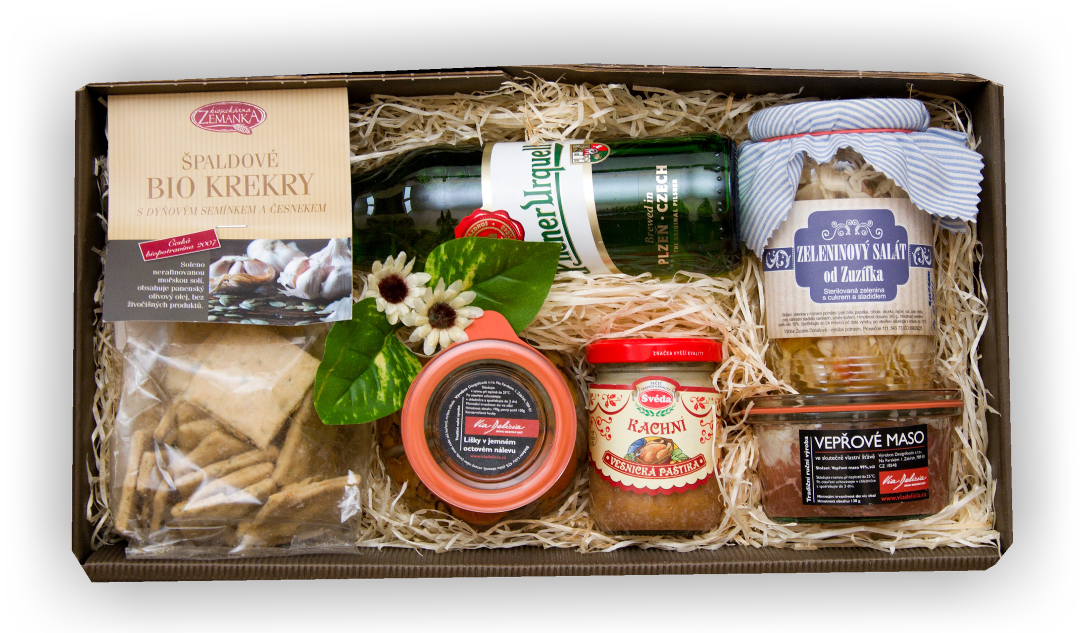 Darujte jedinečnou chuť vybraných slaných českých specialit. Lahodnou vesnickou kachní paštiku nebo vybrané kousky vepřového masa ve skutečně vlastní šťávě doplňují výborné lišky v octovém nálevu.