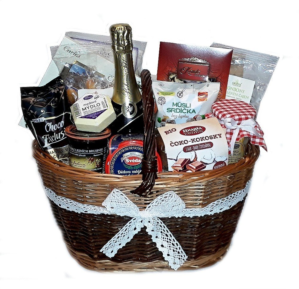 Ochutnejte české regionální dobroty uložené do proutěného koše. Vyberte si z několika druhů čajů a vyzkoušejte k nim například srdíčka z lískooříškového müsli. Nezapomeňte také na masové speciality v podobě kachní vesnické paštiky nebo vepřového kolínka naloženého ve směsi koření. Jako sladkou tečku ochutnejte zlatavý med z východních Čech, brusinkový džem nebo výtečnou čokoládu s ořechy a malinami.