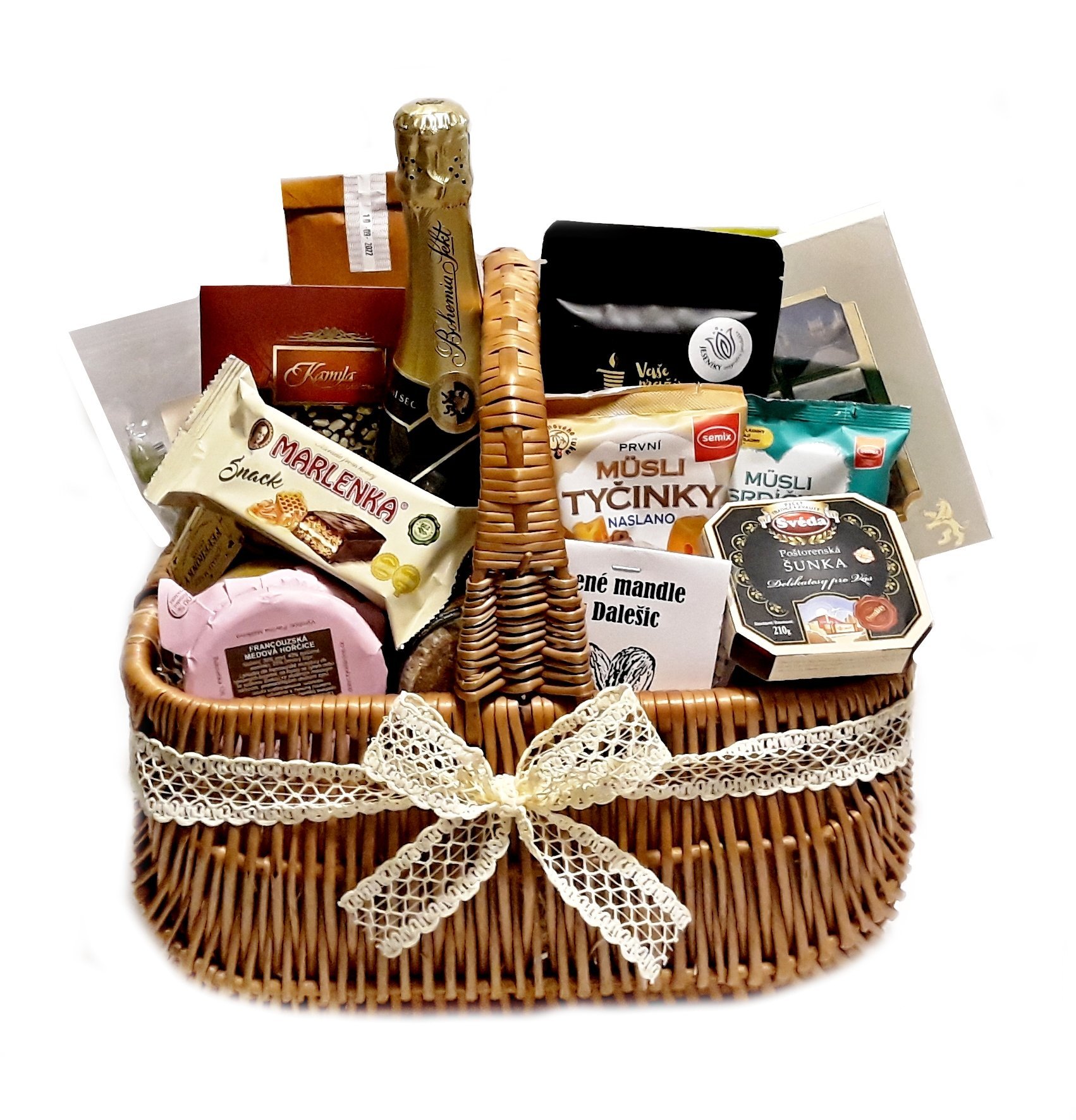 Darujte jedinečný chuťový zážitek v proutěném koši. K šálku výborné pražené kávy si vychutnejte čokoládu s oříšky. K jedinečné provoněné paštice z divočáka nezapomeňte vyzkoušet lahodnou hořčici nebo brusinkovou omáčku s poštorenskou šunkou. Pokud dáte přednost slaným chutím, doporučujeme ochutnat uzené mandle.