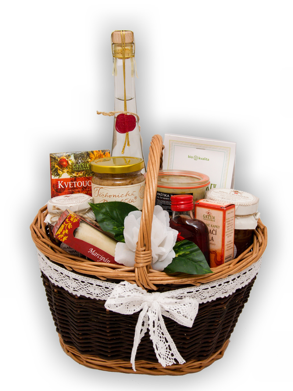 Překvapte novomanžele originálním svatebním darem a věnujte jim luxusní dárkový košík. Darujte vytříbenou chuť paštiky z divočáka, nevšední spojení ananasu naloženého v medu a rumu nebo rakytník v medu. Novomanželé si také mohou pochutnat na jemném višňovém likéru nebo ostřejší jeřabince.