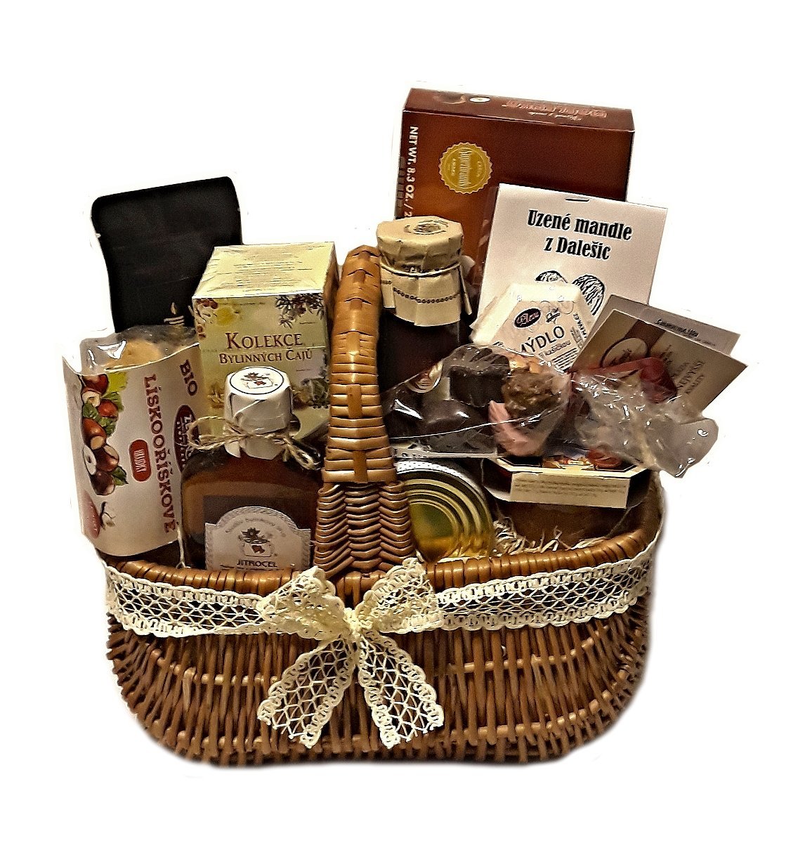 Darujte jedinečný chuťový zážitek v proutěném košíku. K šálku výborné pražené kávy si vychutnejte ručně vyráběné čokoládové pralinky z čokokornoutu. K jedinečné kapří paštice nebo výrobné poštorenské šunce nezapomeňte vyzkoušet brusinkovou omáčku. Pokud dáte přednost slaným chutím, doporučujeme ochutnat uzené mandle.